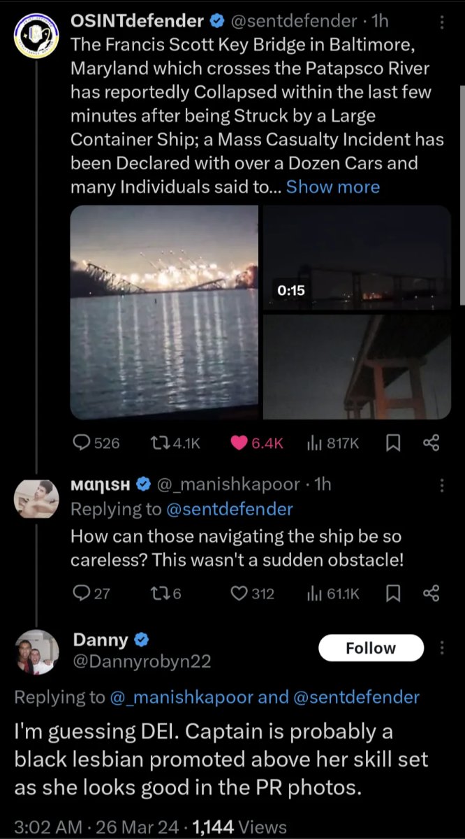 March 26, 20241 yr Ahhh yes, that evil DEI causing disasters...remember when blue check marks actually meant something?