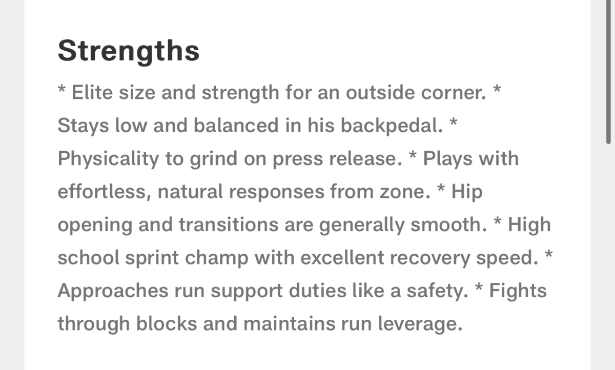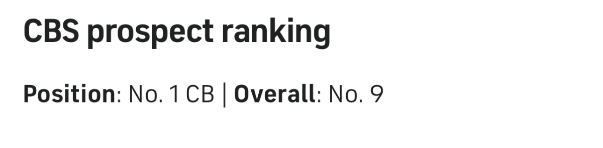 April 9, 20241 yr Author 19 hours ago, VeeMak said: Would you be interested at 22 for a CB with the following draft profile: Reveal hidden contents Kelee Ringo All of that to say that pre draft analysis and underwear Olympic feats can create shiny objects, especially at CB. It’s a very difficult position to draft because it is probably the second most difficult position (to QB) to play professionally in any sport. Whose profile is this? Surtain?