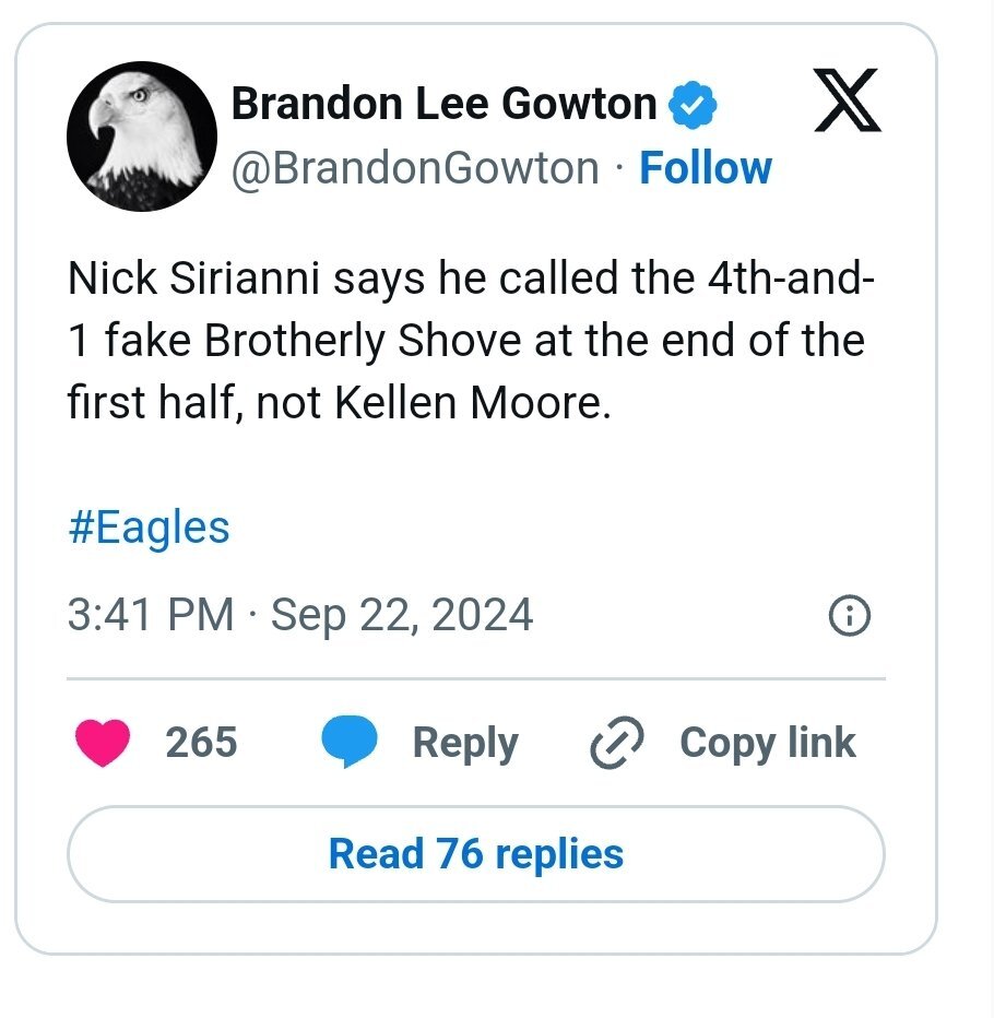 September 26, 20241 yr Author 11 hours ago, kiwinavega said: No I don't, and he made some bad decisions. But as much as I love this fan base we always love the other guy more than the current guy, at both head coach and QB. That's just the truth as I see it. Siri is getting skewered nationally, not just in Philly. He's not a guy who brought extensive qualifications when he was hired. Siri's best two decisions were the coordinators he hired. He was exposed when they left, and he's going off the deep end this year. The clock is ticking. Let the Americans figure this one out.