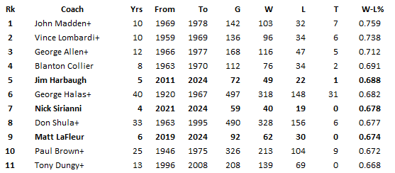 November 7, 2024Nov 7 4 hours ago, Connecticut Eagle said: Super Bowl era, min 50 games Nice of the very talented to team to win despite the HC