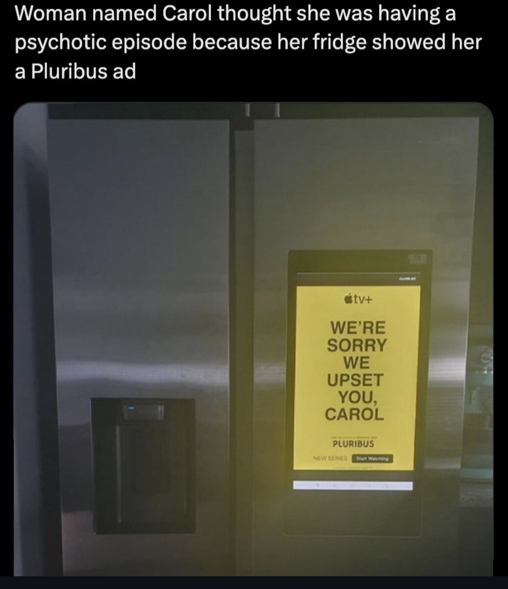 Saturday at 01:59 PM4 days On 12/27/2025 at 8:12 AM, dawkins4prez said:Great show, love watching Gilligan blow through an obscene budget on side musings. These brainy, introverted sci-fi's are uniformly claustrophobic (see: Severance). Pluribus is both intimate and has a massive global scope. It's challenging the concept of humanity the way the old school writers did.Yeah, both my wife and I really enjoyed it. One of the few shows where she was asking when the next episode was on every week.