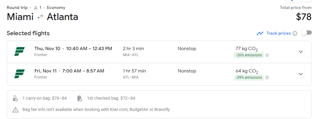 September 7, 20223 yr 57 minutes ago, Mat said: So I have locked in my leave from work. My schedule will be looking something like this 24-27 Vegas 27-1 Philly 1-5 Orlando 5-13 Miami Fly home on the 13th I am going to try and get tickets for the Eagles/Steelers game which is on the 30th at the Linc. The Sixers are unfortunately on like a 10 day road trip the entire time I am in Philly. They play the Wizards in Washington on the 31st so I might be able to catch that game if I do a day trip. Otherwise there is also the possibility of a random flight to Atlanta while I am in Miami to see them play the Hawks. Frontier is kind of a trash airline. They are notorious for being late, sometimes cancelling flights, and half the time if they fly a route, they may only do it 3 days of the week... so if your flight on a Tuesday gets cancelled, they'll try to re-book you on like their Friday flight... which doesn't work for people if there trip is for Tue/Wed/Thur activities. They also charge for pretty much anything you carry onto the plane. "Oh, you have a small backpack that you've stuck your laptop/ipad, headphones, and maybe a change of clothes into? That'll be $35 each way for you to bring that on board". But, if you can use them like a Taxi/Uber, they can be feasible. Example below: 2hr flight from Miami to Atlanta for $78 American (closest cost translation that I can give is that a brand new PlayStation/XBox game retails for $60, so this is like buying a video game and a meal at 5 Guys). Flights are limited, and if you didn't want to waste money on a hotel for the night, you could spend that same money at an Atlanta strip club which would probably be open until 3-4am and just head to the airport after that!