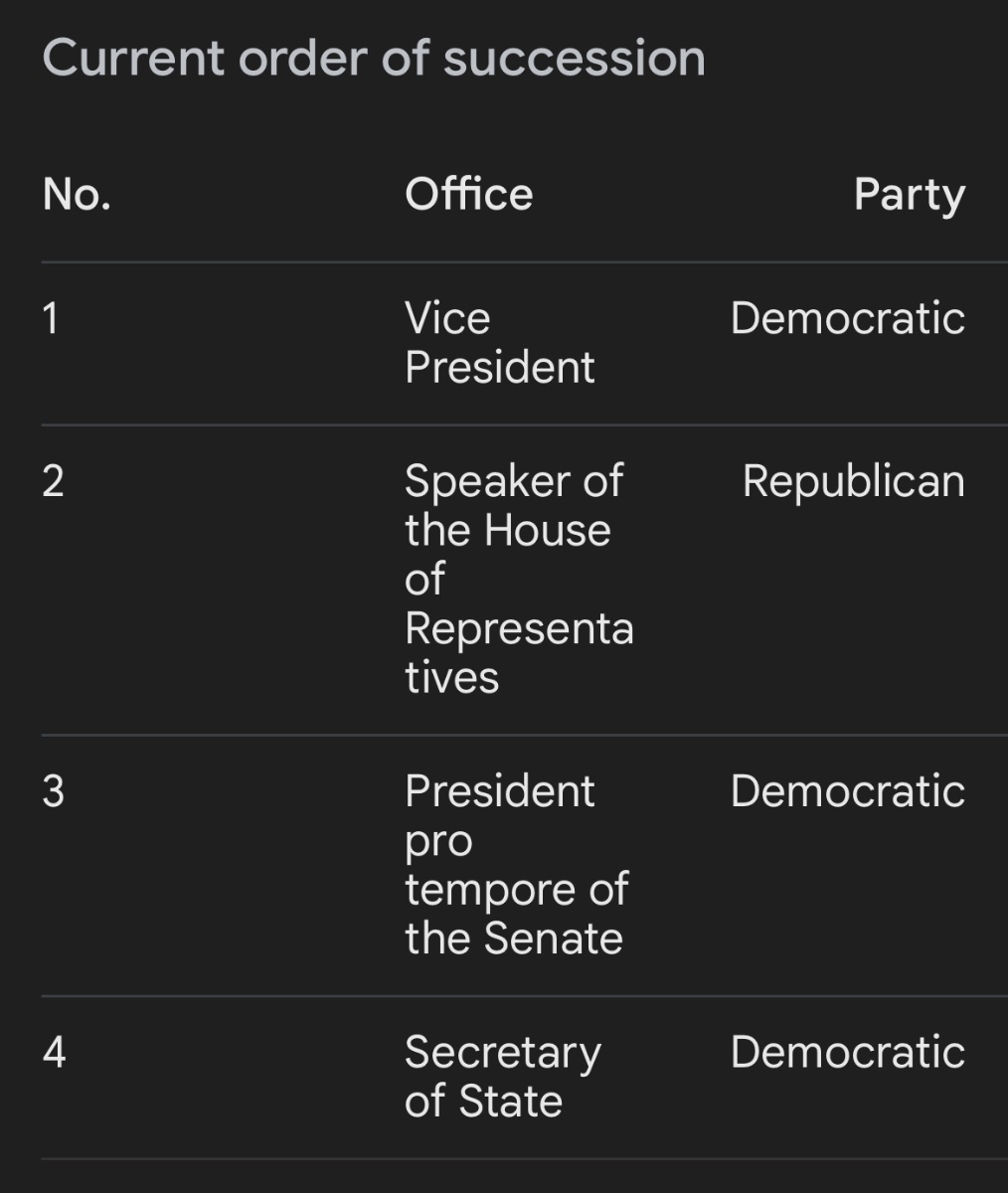 July 28, 20241 yr Here's an article on what happens if a VP becomes President, which we discussed earlier. Quote Here's how Kamala Harris' successor as vice president would be chosen if President Biden steps down The 25th Amendment outlines the steps that must be taken to fill a vacant vice presidency There is a constitutional process of succession that would take effect if President Biden were to step down from his role as commander in chief. Speculation over whether Biden can finish the remainder of his current term heightened after he suddenly withdrew from the 2024 presidential race. If the president did decide to resign before the end of his term, several steps would be taken to form a new cabinet. According to Article II, Section 1 of the Constitution, the vice president becomes president if the president is unable to discharge duties due to death, resignation, removal from office or other reasons. So, if Biden were to step down as president today, Vice President Kamala Harris would be sworn in as the 47th president and serve out the remainder of his term. If a vice president is promoted to president, the vice presidency is vacated. President Biden and Vice President Kamala Harris on the Truman Balcony of the White House in Washington, D.C., July 4, 2024. (Tierney L. Cross) House Speaker Mike Johnson is third in line to the presidency, but he would not step into the position if Harris became president. The only case where the sitting speaker of the House becomes president would be if both the president and vice president died or resigned at the same time. When the vice president assumes the role of president, the new president is responsible for appointing a new vice president, as stated in Section 2 of the 25th Amendment. If this scenario were to unfold today, Harris would become president and nominate a vice president. However, the pick needs to first be approved by a majority in both chambers of Congress, which has a party split with Republicans enjoying a majority in the House and Democrats leading in the Senate. Both the House and the Senate would vote on the approval of the vice president. The House held up all legislative business for nearly two weeks to vote on a new speaker of the House in 2023 after Rep. Matt Gaetz, R-Fla., introduced a motion to vacate Speaker Kevin McCarthy, R–Calif. Republican lawmakers have also proposed an alternative scenario to dismiss the current commander in chief. If the vice president and Cabinet members believe the sitting president is unable to serve, they can invoke the 25th Amendment and oust him from the postilion. In this case, the vice president would become acting president, but the president can still claim an ability to serve. A two-thirds vote by Congress would be necessary to oust the president in that case.