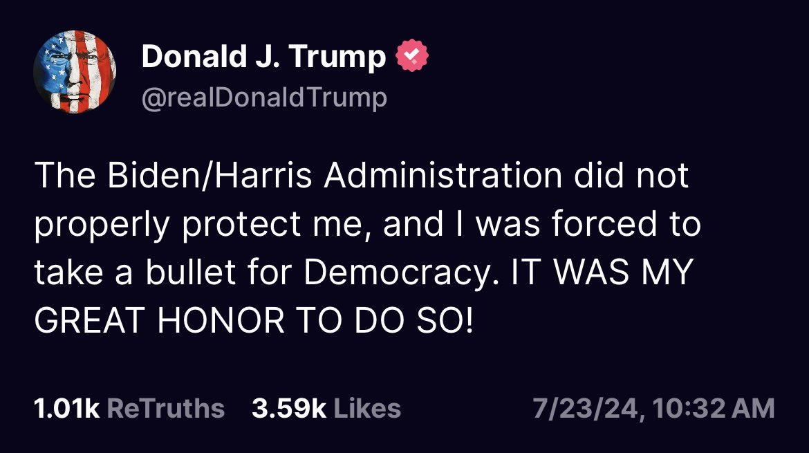 July 23, 20241 yr Just now, mr_hunt said: he kept the wound clean by covering it with gigantic bandages. that's why it healed so quickly! That plus all the praying he did at the RNC! He got 4 pts of bonus healing by closing his eyes even for the Hindu prayer!