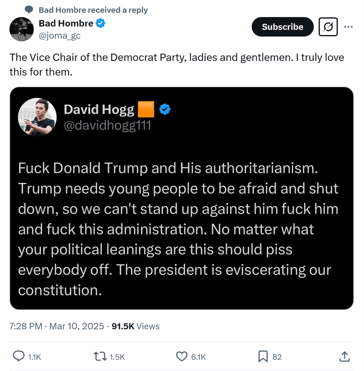 March 9, 2025Mar 9 14 hours ago, we_gotta_believe said: They should pardon the violent criminals who assaulted cops (which you claimed to be at one point, lol) broke into the Capitol, and then wiped their own feces on the walls. That's the standard of maturity we all should aspire to, amirite? No, and those who committed those offenses were charged, but stay on task. There's a standard of behavior that is expected of members of Congress, amirite? Are they consistently behaving as they are expected to? No. they're acting like middle school children. Pro tip: Pointing to other peoples' bad behavior doesn't excuse or mitigate the bad behavior being examined. That's a child's response and despite your faulty reasoning on this matter, I don't think you're a child. You can do better, even if the leadership of your party can't.