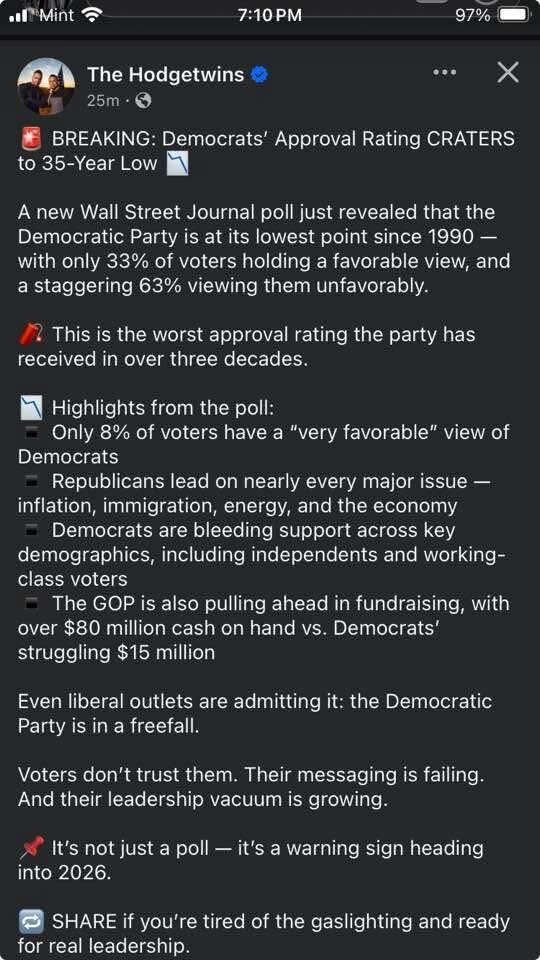 July 26, 2025Jul 26 This guy from the Left nails it on what the state of the Dem party is right now. I honestly don't know what the legit answer would be from some Dems right in the way of justifying their continued loyalty to a party that represents the bi-coastal elites and does nothing for anyone else?