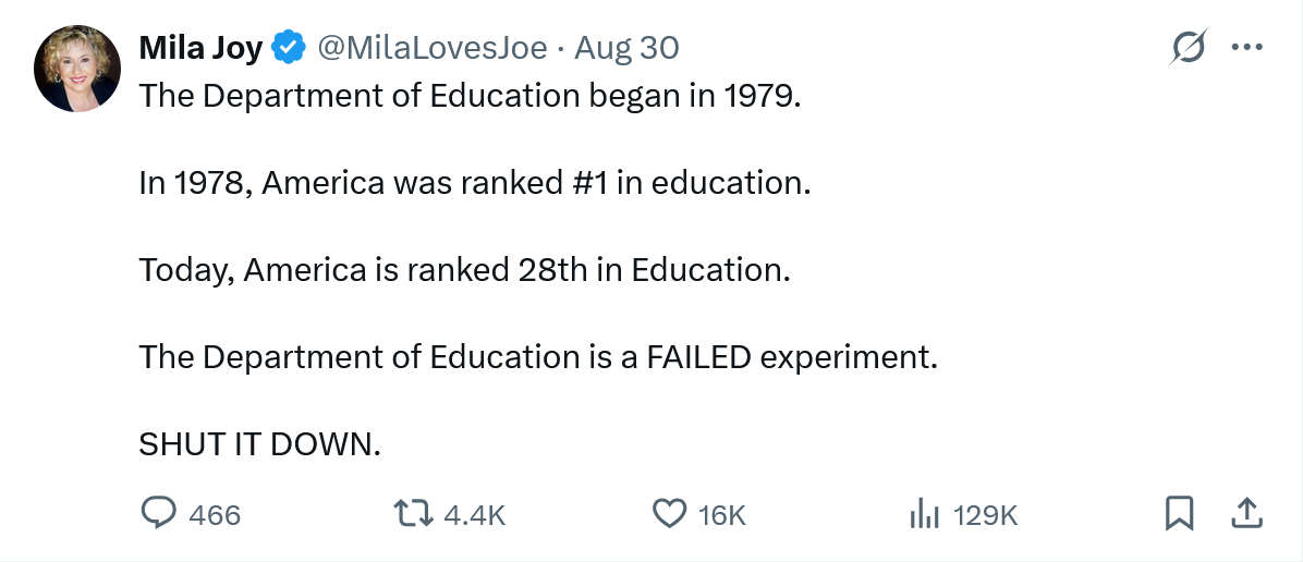 August 31Aug 31 On 8/29/2025 at 5:04 PM, It Hurts said:The leading candidate for ‘28 🤣Investing in education? Insanity. We need more cuts for food for hungry kids and more cuts to cancer research!