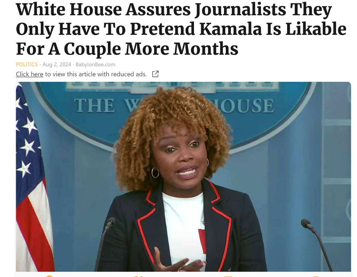 August 2, 20241 yr https://babylonbee.com/news/white-house-assures-journalists-they-only-have-to-pretend-kamala-is-likable-for-a-couple-more-months