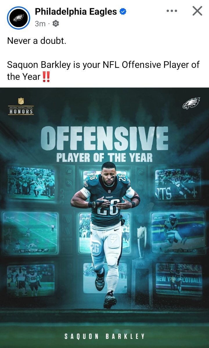 February 11Feb 11 28 minutes ago, time2rock said: Just to sum up Barkey's first season in an Eagles uniform: 2504 total rushing yards (regular season and postseason combined) - new NFL record! 2283 scrimmage yards (regular season only) - best in the NFL 2857 scrimmage yards (regular season and postseason combined) - 143 yards from being the first player in the NFL ever to achieve 3000 scrimmage yards in a season 18 rushing TDs Offensive Player of the Year award recipient I'll go out out on a limb and say it was a pretty good signing! B-B-But it's 13 million for a running back! (Read: Bargain)