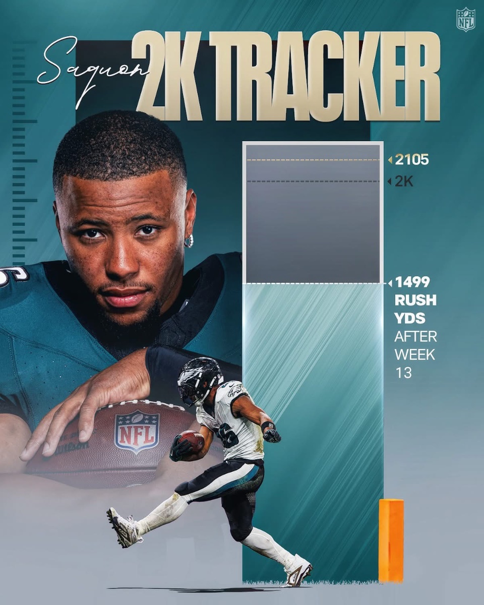 December 3, 2024Dec 3 What happens if the Eagles clinch home field advantage going into the last game and Barkley is a 125 yards away from the record? Does the coach play him or rest him? Does Barkley want the record or allow other players to eat? Hmm.