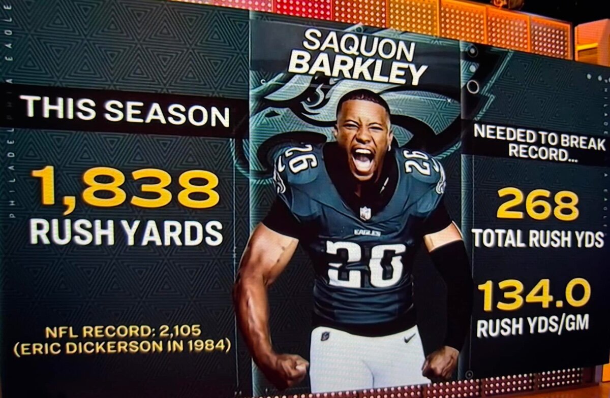 December 27, 2024Dec 27 After reading Dickerson's statement on the record being broken, I want it to be broken even more now. If not this year by Barkley, then by someone else, just to knock Dickerson off his perch.