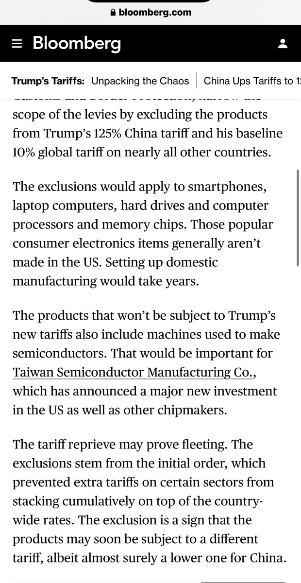 April 12, 2025Apr 12 The soy bean farmers were affect the first time. Even if he lowers/removes tariffs sometimes the damage to reputation is already done.