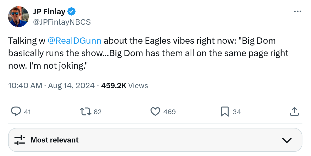 Posted August 15, 20241 yr https://www.barstoolsports.com/blog/3522399/big-dom-basically-runs-the-show-the-nfl-is-in-for-a-world-of-hurt-as-dom-disandro-sets-the-eagles-out-on-his-revenge-tour-this-season?utm_content=buffer6f458&utm_medium=social&utm_source=twitter.com&utm_campaign=buffer "Big Dom Basically Runs The Show" - The NFL Is In For A World Of Hurt As Dom DiSandro Sets The Eagles Out On His Revenge Tour This Season Jordie8/14/2024 12:20 PM The Philadelphia Eagles had one of the most historically dog crap collapses in the history of football last year. After starting off the season 10-1, everybody just started to assume they would represent the NFC again in the Super Bowl. But the moment that Big Dom Disandro would kicked off the sideline during that 49ers game, something shifted. It's like the Eagles had lost their heart, their soul, and their Ds. They then proceeded to lose 6 out of their final 7 games of the year while getting bounced from the playoffs by Tampa in the wild card. Truly despicable. It's impossible to talk about the 2023 Eagles collapse without correlating it directly to Big Dom getting banished from the sideline. But the Eagles are an organization which learns from their previous mistakes. So this year they gave Big Dom a new title that would allow him to be present on the sideline during gamedays. And clearly that's more important than even the biggest Big Dom fan could even imagine, because its sounding more and more like Big Dom is the one who truly runs the show on that team. Nick Sirianni has coached in a Super Bowl. Jeff Stoutland is considered the best offensive line coach the game has to offer. Kellen Moore has been around forever. Vic Fangio has had an illustrious career. And out of everybody on the Eagles staff, it's the head of security who has the team going right now on the same page. One team, one heart beat. Listen. Some guys in life were just born to lead. You don't need to know football to know how to lead. You just need to know how to get the best out of each and every one of your guys to make sure that everybody is working towards accomplishing the same task. Big Dom was born to lead. And now that the dope powers that be at the NFL can't kick him off the sideline anymore, it's time to see what this Eagles team is truly capable of. Anything that happened last year after he was banned from the sideline doesn't count.