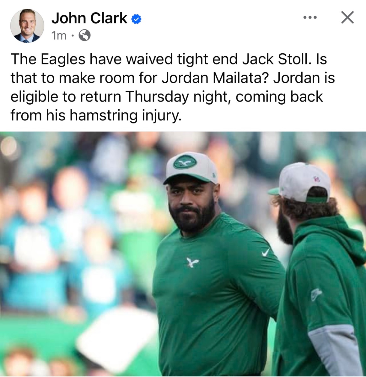 November 5, 2024Nov 5 2 hours ago, time2rock said: TE Albert Okwuegbunam released. https://www.nbcsports.com/nfl/profootballtalk/rumor-mill/news/eagles-release-albert-okwuegbunam They have such a strange fascination with this guy.