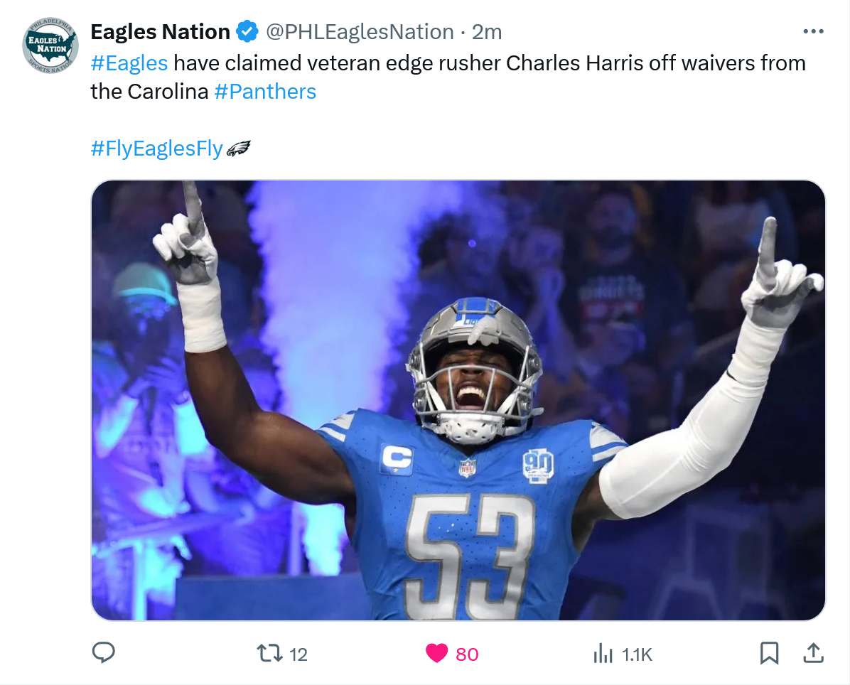 November 28, 2024Nov 28 On 11/26/2024 at 8:47 PM, brkmsn said: Harris is a depth acquisition. This is a good move. We have plenty of young, inexperienced guys still on the roster. This adds an experienced vet with 6 starts on the 2024 season. He's no superstar, but this move can be lor us like the Texans acquiring Barnett when we waived him last season. Look at all the 1st round Eagles from 2017: 1 9 CIN John Ross WR 21 2024 0 0 1 7 5 38 0 0 0 0 0 9 41 0 63 963 11 Washington College Stats 1 10 KAN Patrick Mahomes QB 21 2024 2 6 7 96 96 107 2652 3971 31097 237 74 418 2163 13 2 8 0 2 Texas Tech College Stats 1 11 NOR Marshon Lattimore CB 21 2024 0 4 6 40 40 97 0 0 0 0 0 0 0 0 0 0 0 326 15 Ohio St. College Stats 1 12 HOU Deshaun Watson QB 21 2024 0 3 4 58 52 73 1527 2305 17904 123 48 400 2142 20 1 6 1 1 Clemson College Stats 1 13 ARI Haason Reddick LB 22 2024 0 2 5 43 14 118 0 0 0 0 0 0 0 0 0 0 0 264 58.5 Temple College Stats 1 14 PHI Derek Barnett DE 21 2024 0 0 3 24 22 90 0 0 0 0 0 0 0 0 0 0 0 117 28.0 Tennessee College Stats 1 15 IND Malik Hooker S 21 2024 0 0 5 21 13 94 0 0 0 0 0 0 0 0 0 0 0 213 13 Ohio St. College Stats 1 16 BAL Marlon Humphrey CB 21 2024 1 3 7 49 49 111 0 0 0 0 0 0 0 0 0 0 0 341 18 5.5 Alabama College Stats 1 17 WAS Jonathan Allen DE 22 2024 0 2 7 48 48 107 0 0 0 0 0 0 0 0 0 0 0 238 1 41.0 Alabama College Stats 1 18 TEN Adoree' Jackson CB 21 2024 0 0 6 26 15 91 0 0 0 0 0 5 55 0 0 0 0 318 4 USC College Stats 1 19 TAM O.J. Howard TE 22 2022 0 0 4 13 12 72 0 0 0 0 0 0 0 0 129 1882 17 Alabama College Stats 1 20 DEN Garett Bolles T 25 2024 0 0 7 41 41 111 0 0 0 0 0 0 0 0 0 0 0 Utah College Stats 1 21 DET Jarrad Davis LB 22 2022 0 0 3 22 20 68 0 0 0 0 0 0 0 0 0 0 0 226 1 11.0 Florida College Stats 1 22 MIA Charles Harris OLB 22 2024 0 0 2 15 4 99 0 0 0 0 0 0 0 0 0 0 0 111 19.5 Missouri Co He's leaving a trash team and coming to a much better defense with better coaching. Honestly, it is fortuitous that the panthers waived him at the moment we needed to fill a spot at edge. Cheap too. Contract Terms: 1 yr(s) / $1,125,000 Average Salary: $1,125,000 Signing Bonus: N/A GTD at Sign: Total GTD: Free Agent: 2025 / UFA Agreed. Plus, good coaching can do wonders for a player's career. Just ask Zach Baun.