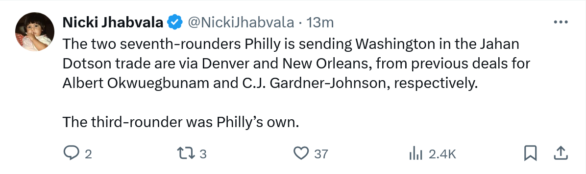 August 22, 20241 yr 1 hour ago, time2rock said: The value of what we gave up is basically equivalent to a 4th (since we are getting a 5th in return). We have Miami's 3rd in 2025 so we still have 2 day 2 picks. Wonder if we gave up our 3rd or Miami's? Hopefully the lesser of the 2. I read somewhere it's the better of the two. Still, the Dolphins will be good this year and hopefully the Eagles too, so it's not a high pick.