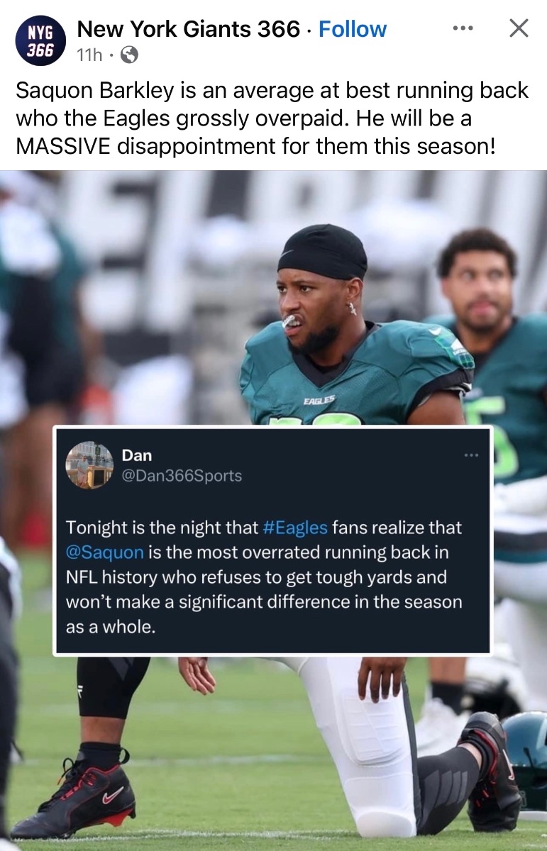 September 7, 20241 yr 5 minutes ago, VaBeach_Eagle said: I wasn't able to watch any of the game, though I followed the score on my tablet. I did go over to a Giants board to see what they might think of Barkley having a good game. Some were bitter about it, some weren't. I have my FuBo set to record all Eagles games, so I'll watch it later tonight. Spoiler alert the giants fans aren’t salty enough. Barley was a beast!