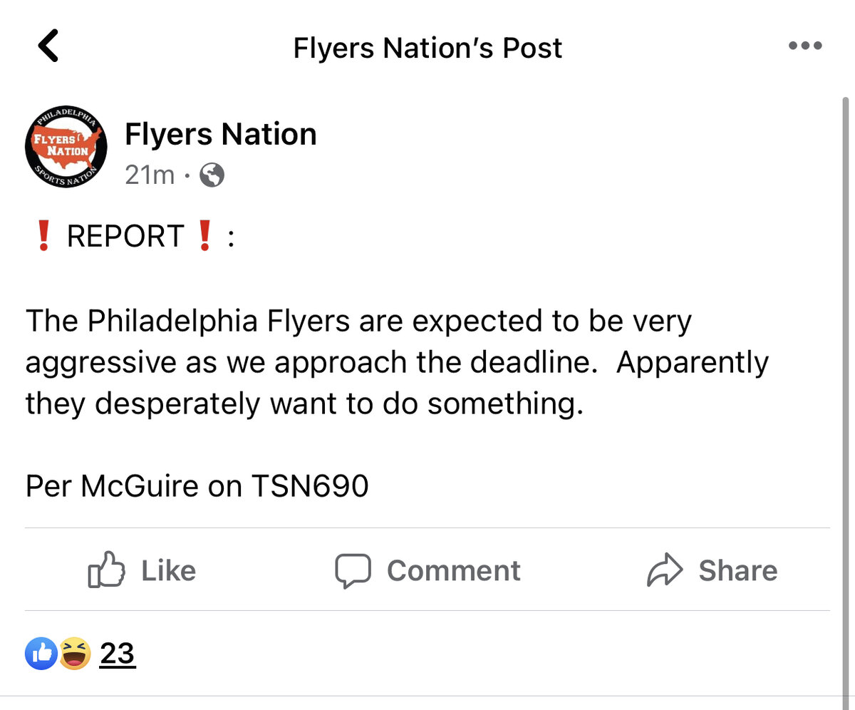 March 26, 20214 yr 26 minutes ago, 4for4EaglesNest said: Comcast ownership likely doesn’t give a ish about winning a cup. Yup...