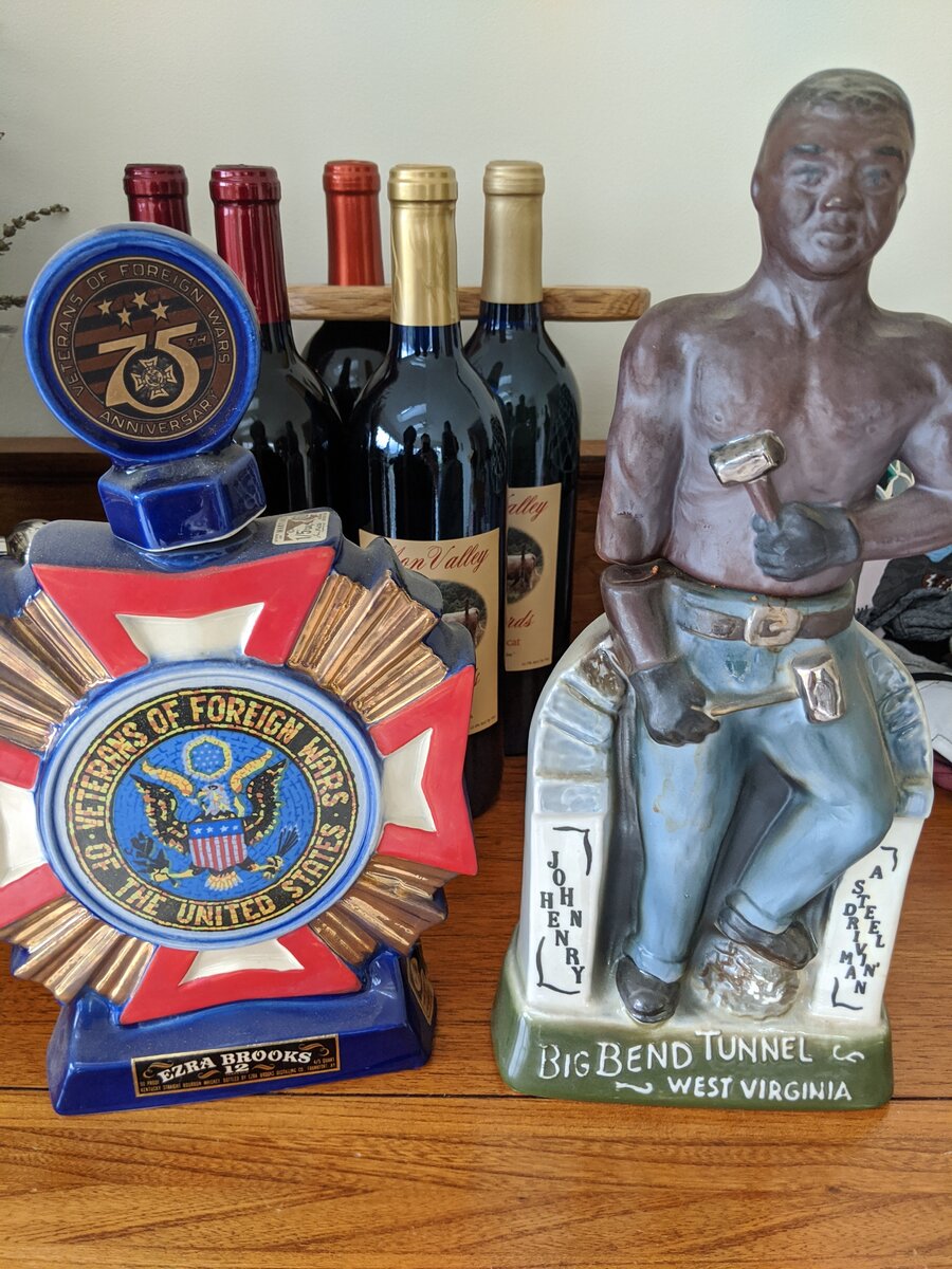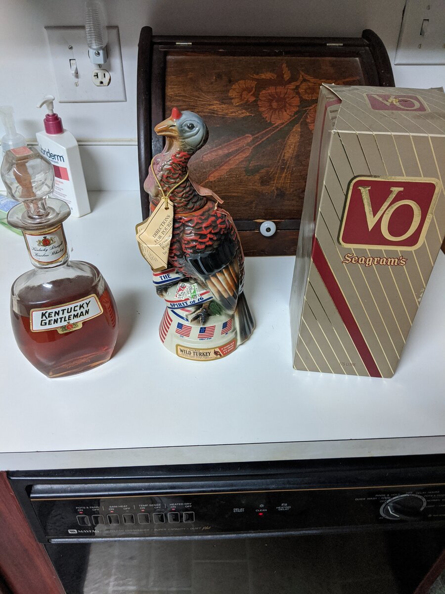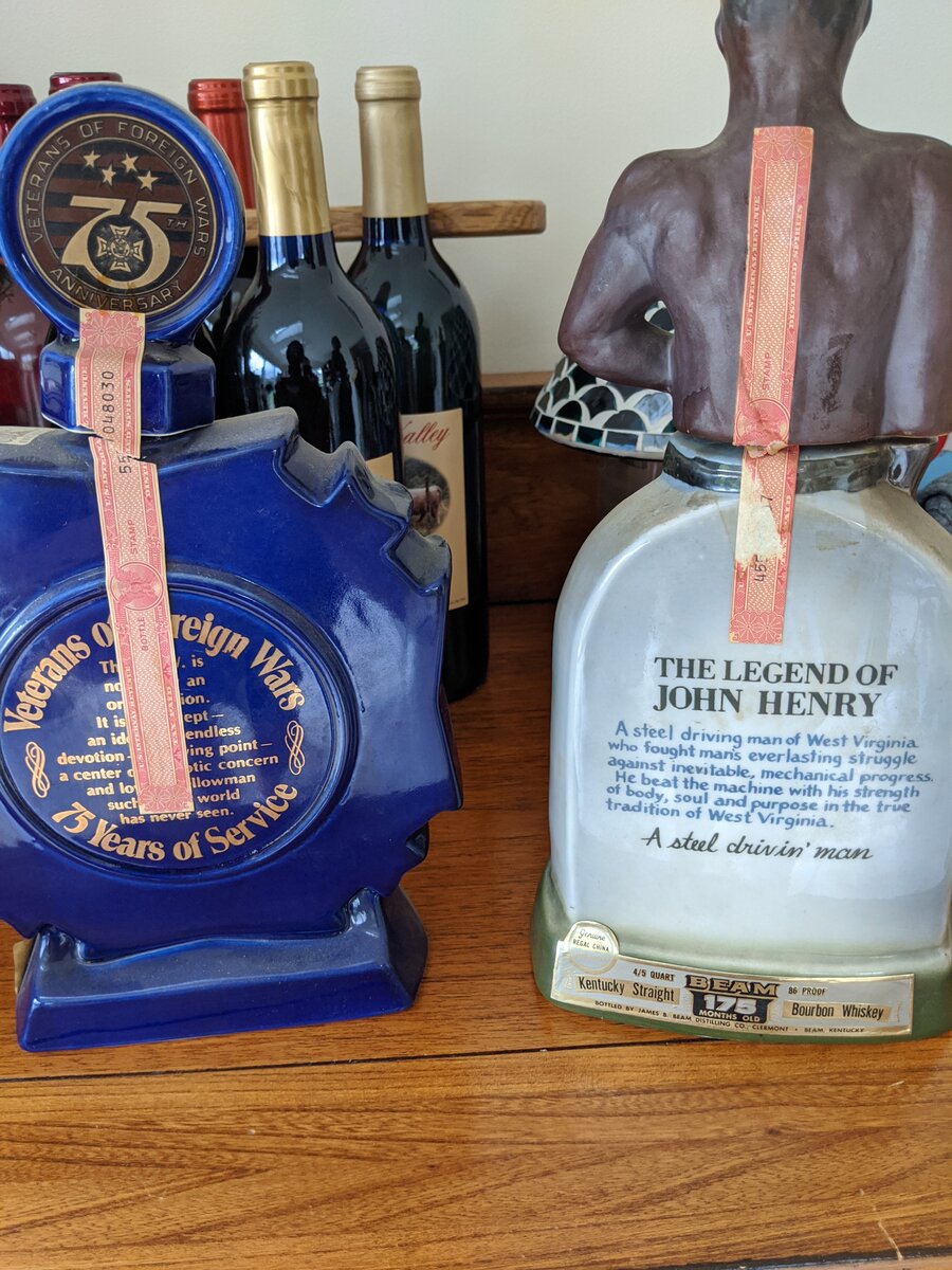 September 15, 20223 yr My grandfather passed away several months ago and while getting his belongings all gathered up we found a bunch of whiskey from as far back as the 70s, maybe earlier. He was not a drinker so we think they were just gift bottles he never opened. Actually a few bottles were already opened, I tried to filter and bottle them but it didn't work out. Just straight alcohol and little taste so I think Im going to have to pour them out. Three of these were the Ezra Brooks VFW one, Wild Turkey (shaped like a turkey from '76), and the John Henry one which was disappointing because its just a badass bottle. The rest you see are unopened, and Ive got about double this amount. So for some reason I feel the need to catalogue them. Ive done some googling and you can semi-date them by the label. For example at some point the IRS stopped labeling them, so if you see the IRS on the label along with some other details, like on that Fleischmann bottle, you know its between '61-'77. I'll try to get some photos of the others if anyone is interested.