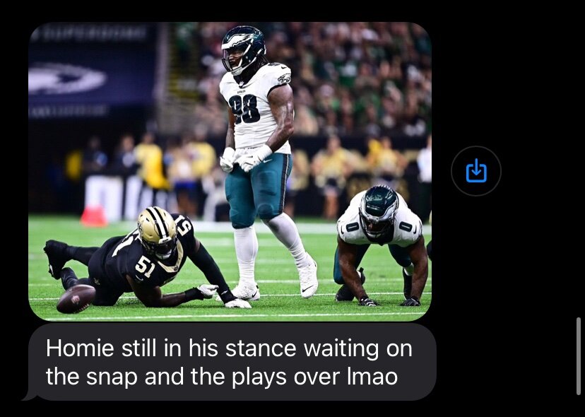 September 29, 20241 yr 2 hours ago, Swoop said: Probably nothing, but he could potentially climb the ranks as worst Eagles FA signing with how it's been so far He's still got some work to do to knock Nnamdi Asomugha off that pedestal. Although, this little digital tantrum isn't helping his cause.