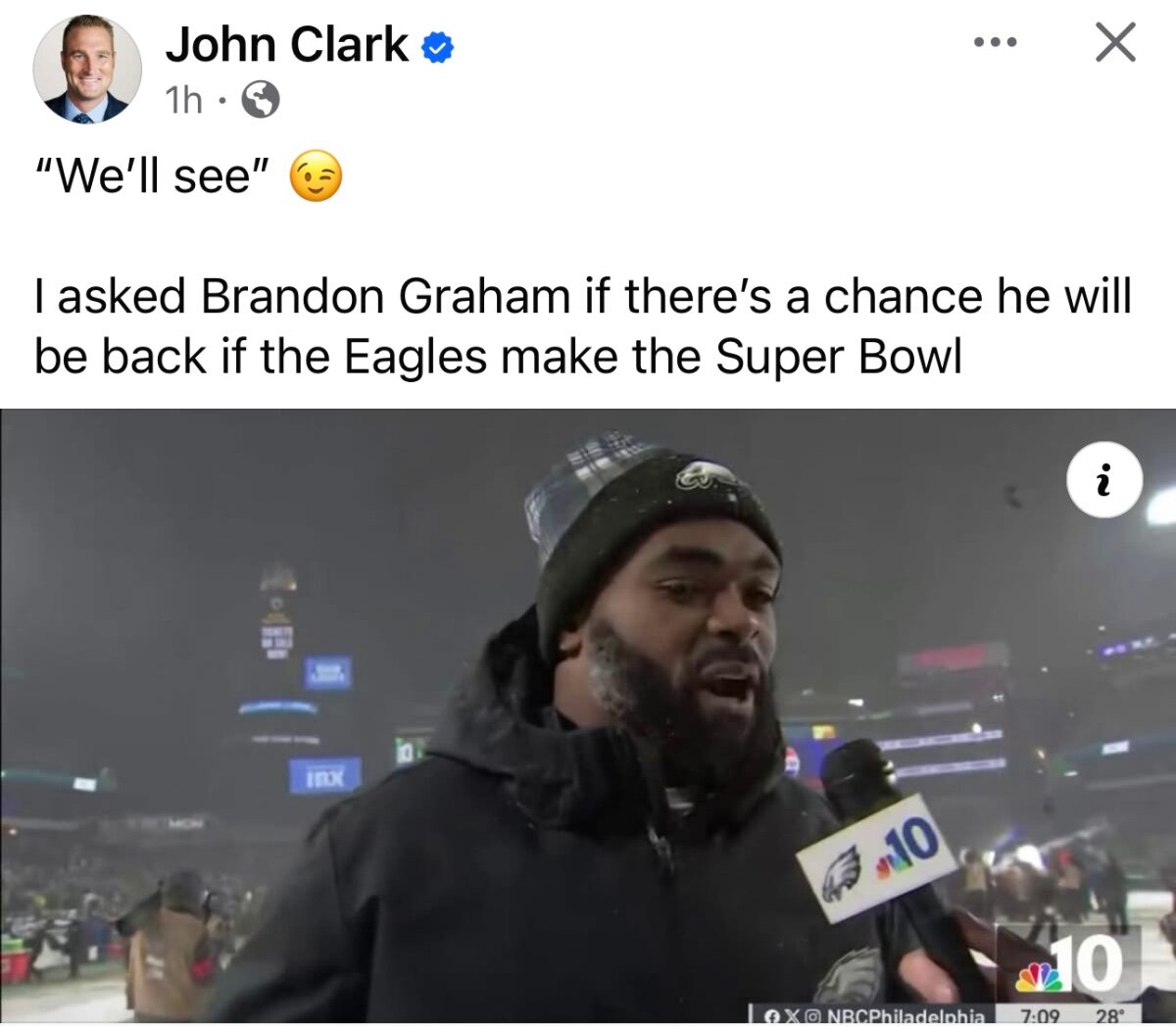 January 21Jan 21 A one armed Brandon Graham could contribute something. Would be great if he could try.