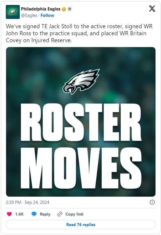 Posted September 29, 20241 yr Running Wild Posted: September 24th, 2024 | Author: Tommy Lawlor I remember hearing rumors that the Eagles might pursue Saquon Barkley back in March. I doubted them because the Eagles have been able to find good RBs at a cheaper price. Would Howie Roseman really pony up big money for a star RB? Yes. And it’s a great thing he did. Barkley has been everything the Eagles hoped for and more. 24-109-2 22-95 17-147-2 Barkley leads the NFL in rushing with 351 yards. He has been a workhorse for an offense that needed such a RB. With AJ Brown missing the past two games, the passing game hasn’t been as explosive. That meant Barkley had to help move the chains and make plays. With the Eagles down 3-0 on Sunday, Barkley took a hand-off and went left. Good blocking got him to the second level and he just exploded down the field. I jumped up and started screaming at the TV "GO! GO! GO!” That was the most excited I had been all afternoon. Barkley’s run put a TD on the board and it gave life to the Eagles. They went up 7-3 and things felt immediately different. The star RB made a star play. 65 yards like he was shot out of a rocket. That play doesn’t happen if the Eagles go bargain shopping. D’Andre Swift’s long run last year was 43 yards. This year Swift has found that life away from Philly can be brutal. He has 37 carries for 68 yards for the season. Barkley almost matched his season with one run. Yikes. Howie changed his mind on pursuing a RB when the market shifted. Barkley feels like good value right now. He’s not cheap, but you’re getting a difference-making player. He’s absolutely worth the money. The Eagles offense is second in the league in yards. AJ Brown has only played one game. DeVonta Smith missed half of the Saints game. The OL was missing two starters for most of the Saints game. Jalen Hurts and Barkley have made the offense go. There are still some red zone issues to work through, but you have to be excited by the potential this group has shown. It will be fun to see how the offense comes together over the course of the season. ***** This needed to happen. Grant Calcaterra has really struggled as a blocker this year. He’s okay when he is on the move, but struggles as an in-line blocker. He has hurt the offense with missed blocks. Stoll isn’t a gifted athlete or receiver, but he is big, strong and physical. That can help the offense. Having Calcaterra and EJ Jenkins on the field at the same time wasn’t good if they had to block. ***** Good breakdown here by Franimal. Jalen Carter was the star on Sunday, but the whole defense played well and had a hand in shutting down the Saints. http://igglesblitz.com/2024/09/running-wild/