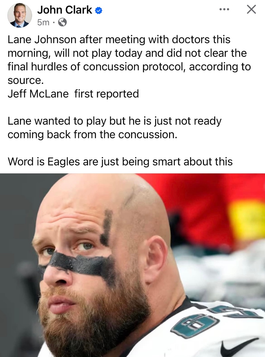 Posted September 29, 20241 yr A.J. Brown ruled out for Bucs but Lane Johnson still has a chance to play By Reuben Frank • Published September 28, 2024 The Eagles on Saturday afternoon ruled A.J. Brown out for their game Sunday in Tampa against the Buccaneers. This will be the third game Brown has missed after suffering a hamstring injury at practice before the Falcons game. Brown only missed six games in his first five NFL seasons, all while he was with the Titans. The good news is that the Eagles didn’t downgrade Lane Johnson, who traveled with the team to Tampa on Saturday afternoon. Johnson suffered a concussion in the second quarter of the win in New Orleans on Sunday. Brown, a three-time Pro Bowler, has 199 catches, 3,071 receiving yards and 19 touchdowns in just 35 games as an Eagle. He caught five passes for 119 yards in the opener vs. the Packers in São Paulo and hasn’t played since. Brown wasn’t at practice on Wednesday or Thursday but appeared Friday and was listed as limited. The Eagles are 20-5 when Brown has at least 60 yards and 6-4 when he doesn’t. With Brown, DeVonta Smith (concussion) and Britain Covey (Injured Reserve with shoulder injury) all out for Sunday, the Eagles’ available receivers are Jahan Dotson, Parris Campbell, Johnny Wilson and John Ross. Dotson, Campbell, Wilson and Ross, all new to the Eagles this year, have a combined six catches for 36 yards this year. Ross was just added to the practice squad on Tuesday after spending the summer with the Eagles. He and Campbell were both game-day call-ups for Sunday. The Eagles have a bye week next weekend, so by the time they play again – Oct. 13 at home against the Browns – Brown will be a month out from the injury. As for Johnson, a five-time Pro Bowler, he was out at practice and in uniform Thursday but didn’t participate. He went through phantom reps alongside the other offensive lineman. But he was listed as limited on Friday. Since 2013, the Eagles are 91-55-1 when Johnson plays and 14-21 when he doesn’t. Fred Johnson took over at right tackle after Lane Johnson left the game Sunday and played well in his most extensive playing time since he was with the Bengals in 2021. If Johnson doesn’t start, Johnson would get his first start since Week 15 of the 2021 season, when he started in a Bengals win over the Broncos in Denver. He’s made five career starts. The Eagles also listed benched linebacker Devin White as out for Sunday for personal reasons. White was a starter throughout the preseason before losing his job to Nakobe Dean. He hasn't played this year. https://www.nbcsportsphiladelphia.com/nfl/philadelphia-eagles/eagles-week-4-aj-brown-ruled-out-buccaneers-lane-johnson/619124/