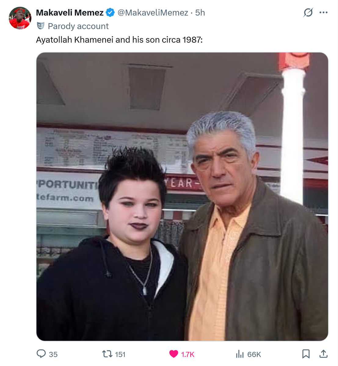 59 minutes ago59 min 17 minutes ago, VanHammersly said:And I bet Iran’s never had a President who sucked off a previous president. Take that!Or one that F'ed kids.
