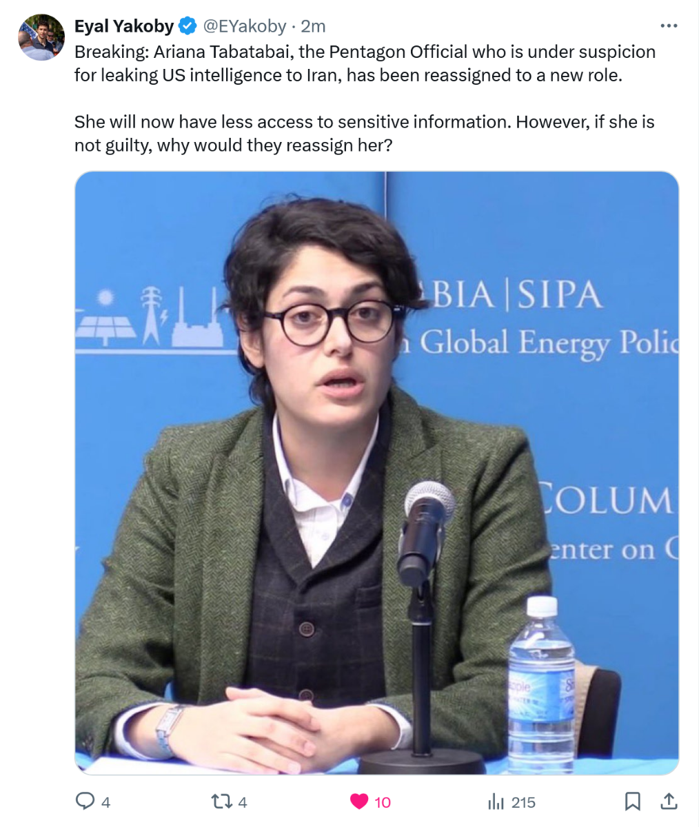 October 29, 2024Oct 29 1 hour ago, Procus said: What the hell was she doing in a job that required a high level security clearance in the first place? On 10/25/2024 at 9:39 AM, Newman! said: This woman has been linked to Iran. No way in the world she should hold a position in the U.S. government that requires a security clearance. Pre-Obama, something like this never would have happened. Has the fingerprints of Qatar all over it. https://freebeacon.com/biden-harris-administration/biden-harris-admin-promotes-pentagon-employee-tied-to-iranian-influence-network/