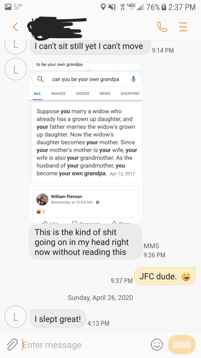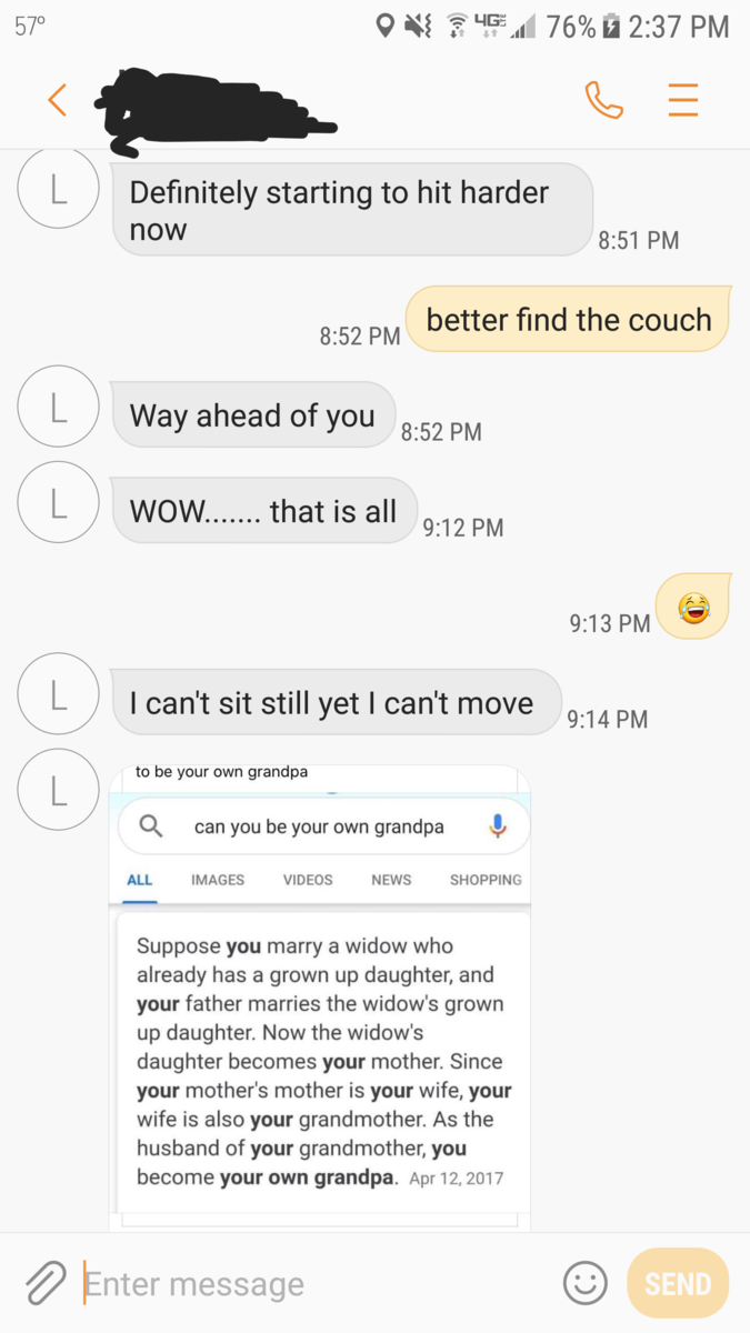 October 27, 20204 yr 7 minutes ago, binkybink77 said: What you guys call couch lock, makes me feel like I have no peripheral vision and that I'm trapped inside a box or underwater. That's not a relaxing feeling for me. Damn, that really sucks. It definitely hits people differently, there's no doubt about that. Couch lock for me pretty much turns euphoric depending on what it is and how much I've had. That's Indica though. Sativa turns me into an anxiety ridden mess like 90% of the time.