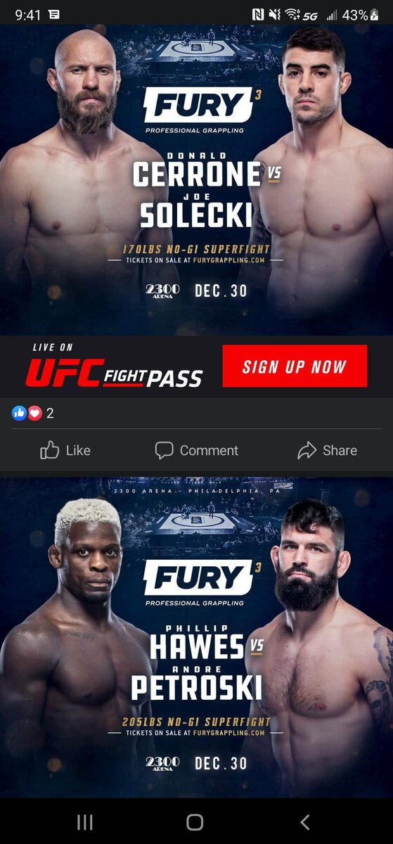December 24, 20213 yr On 12/20/2021 at 6:56 PM, iladelphxx said: Cage Fury is holding a huge Grappling Event at the 2300 Arena in South Philly on 12/30. Multiple UFC fighters and top grapplers will be competing.... Probably will be the closest thing to a UFC fight in the Philly area anytime soon MAIN CARD Danielle Kelly vs. Rose Namajunas [MAIN EVENT] Sean Brady vs. Craig Jones Clay Guida vs. Billy Qurantillo Chase Hooper vs. Renato Moicano Nicky Rod vs. Steve Mowry Kevin Holland vs. Kody Hamrah Neil Magny vs. Joaquim Silva Alex Caceres vs. Eddy Torres Two more fights added..... This is a stacked card