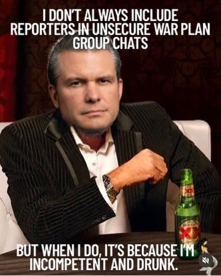 March 25Mar 25 Cheeto’s retahded goons using an unsecured chat app to discuss classified info is bad enough…but then they add a reporter to the chat.