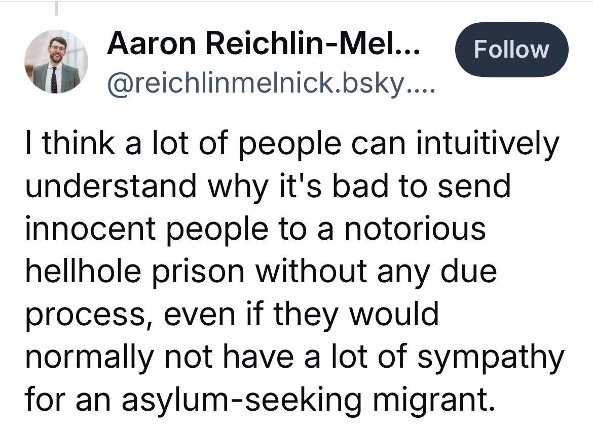 March 31Mar 31 2 minutes ago, Gannan said: I'm not a lawyer, but I consider myself to be "civically engaged" and have a general knowledge of how government works, and this is how I always understood visas and how they work. That's why my position from the start was "this was to be expected" and "what did she and other protestors expect"? I'll back halfway down on the free speech / visa aspect as this seems to be unsettled law according to the NYT article. My bad there (hand up) though all the info out there suggested otherwise until this article came out. I imagine we will get a SCOTUS ruling at some point. The other part is due process. I'm not sure what the law is there but I wouldn't think a person can legally be shipped halfway across the continent and held in detention in a jail indefinitely without a judge's ruling. I imagine we will learn more about that aspect as well as things go forward. The other example we haven't discussed is the shipment of people directly into the El Salvadoran hell hole prison without any due process. You won't convince me that is legal. We are not at war.