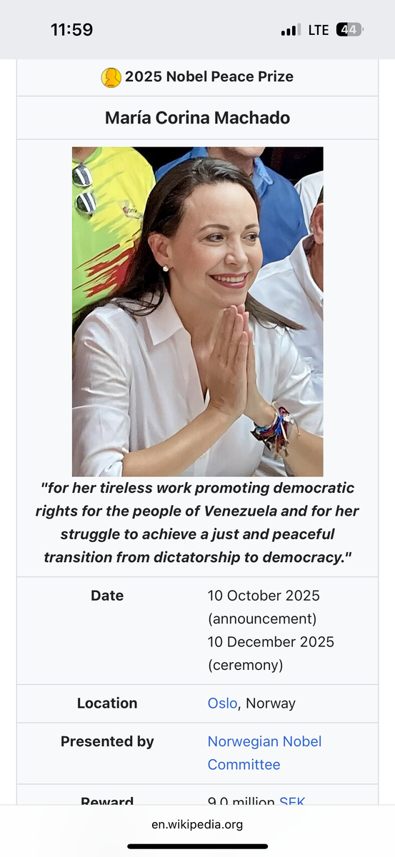 23 hours ago23 hr I guess the bombing will take place shortly. Norwegians better have their air defense popcorn ready! Maybe Trumpy Trump knew ahead of time that they were picking someone from Venezuela and that’s why our military was taking out those "secret” drug boats.