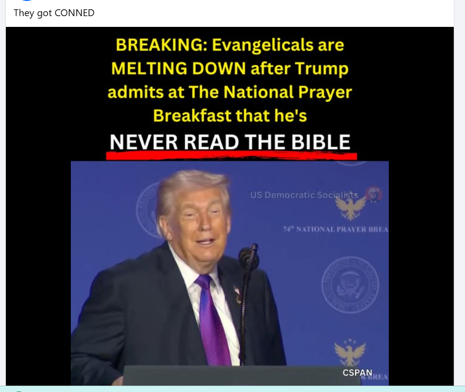 February 5Feb 5 Trump Christ, the son of God, admits he never read the bible. Not a surprise yet, Evangelicals worship him as God anyway.