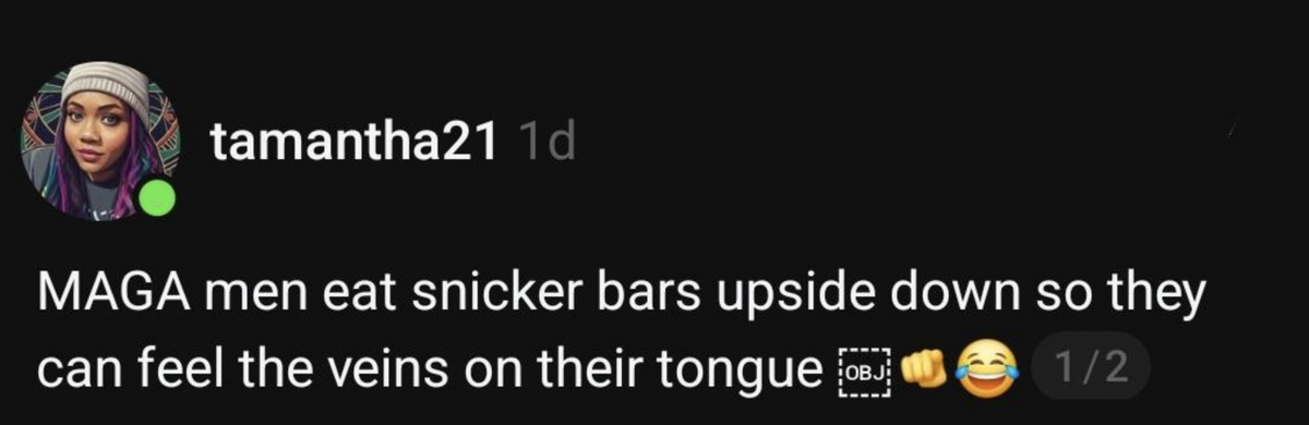 Tuesday at 06:13 PM5 days This is what we up against! The insult and rudeness. We cant even enjoy candy bars because we MAGA