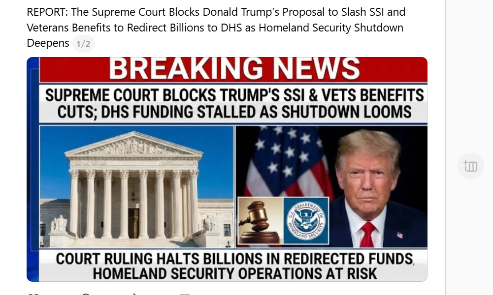 Tuesday at 04:13 PM5 days Stealing from vets and the disabled to fund DHS is the most pathetic attempt by President in history.