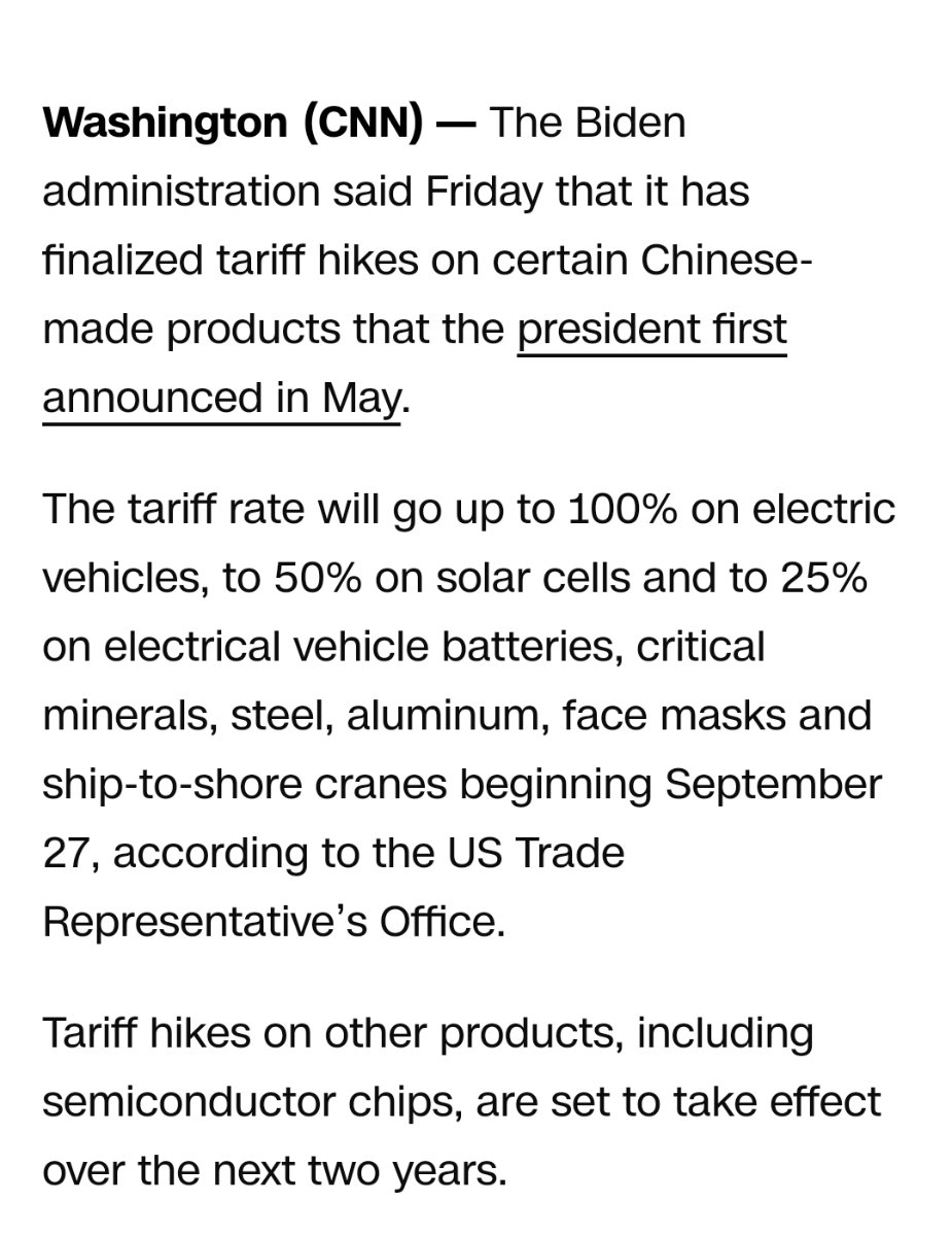 November 9, 2024Nov 9 This is from end of Sept this year. What makes Bidens tariffs, or increase in tariffs any different then Trump's? @Lambo, you said specifically that Aluminum was discussed with your boss, and preparing for the price to climb. Is that due to the tariff increase that Biden made 2 months ago? Article from CNN specifically mentions aluminum.Trying to figure out how Trump is to blame for this..