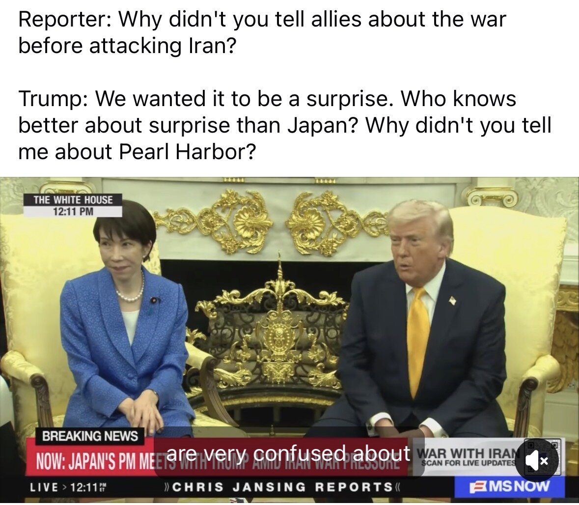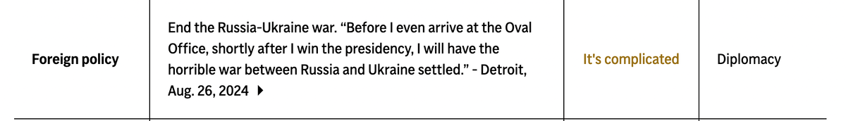 1 hour ago1 hr 27 minutes ago, Mike030270 said:The fact they need a "it’s complicated” is hilariousIt's also a pretty weird and limited list This one:is hilarious. No, it's not complicated actually. The provided quote says "Before I even arrive..." That's a failure.And somehow, that's the only thing in foreign policy, which is insane because Trump talked about "No New Wars" non-stop during the campaign and that he'd settle the War in Gaze (which he didn't and is still going on).