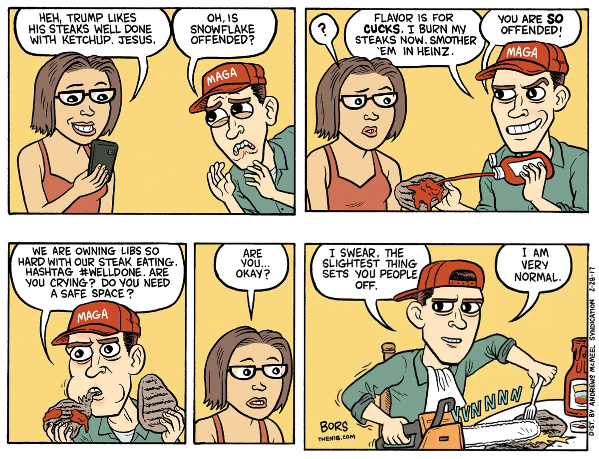 22 hours ago22 hr >Still be a Trump supporter in 2026>Enter a topic specifically about Trump>Get triggered by people who don't like Trump>Go on rants and have meltdowns>Get laughed at>Claim everyone else are the ones who are triggered>Make off topic posts about transgenders and Democrats>Get told to stay on topic>Get triggered and have more meltdowns>Get laughed at>Claim everyone else is having a meltdown>Post some random video about Democrats>Get laughed at>Get triggered that no one watched the dumb video>Get laughed at