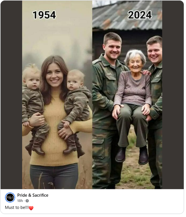 February 4Feb 4 1 hour ago, jsdarkstar said: No doubt information on the net will be bot controlled in the future I have some questions about this photo A Photo from 1954 would be worn and more yellow from Oxidation. Also the clothes are anachronistic. Clearly the clothes are more modern. The children are wearing military camo type pants and hoodies. I highly doubt that was how kids were dressed in the early 50's. Her Jeans also look more modern. Turtle neck for women? I doubt that was worn in the 50's as well. Given the years. The woman would be 70. She doesn't look 70 to me. Cleary a fake photo. I saw this one on Social Media Yesterday. Wouldn't she be more like 90+? Unless she is 0 in the picture. The boys would be 70ish though and they don't look 70ish.