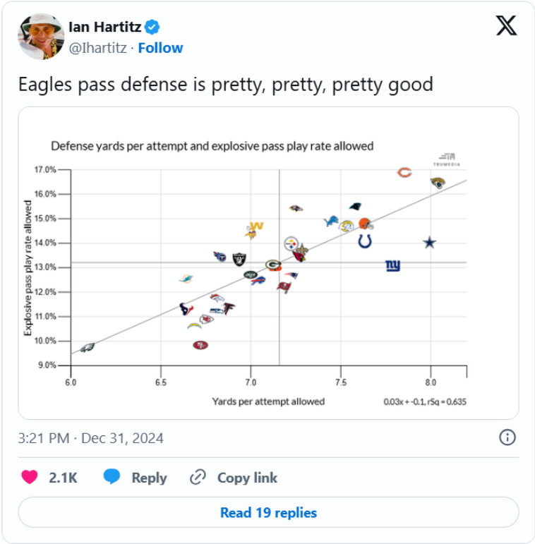 December 23, 2024Dec 23 the defense is only as good as the offense. i think washington is a bad match up for the defense straight up. if they cant play ball control with hurts and saquon than the defense will crumble as we saw yesterday