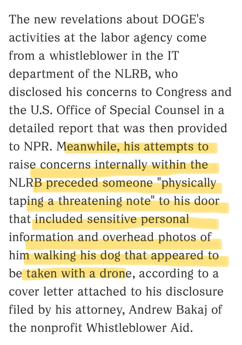April 17, 2025Apr 17 13 hours ago, toolg said:They have Federal workers under surveillance. Is this efficient?What's great about this is that Trump demanded "whistleblower protections" from Harvard.(Harvard already has very robust whistleblower protection policies and procedures.)