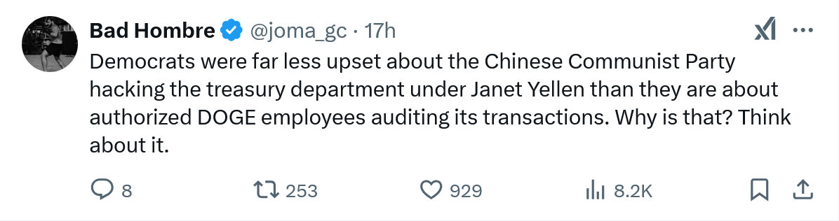 February 8, 20251 yr 20 minutes ago, mayanh8 said: Just to be clear, you believe everyone's current PII, card info, and bank account information are just floating out in the dark web? Regardless if it was, to be ok with Musk having it as well is deranged.