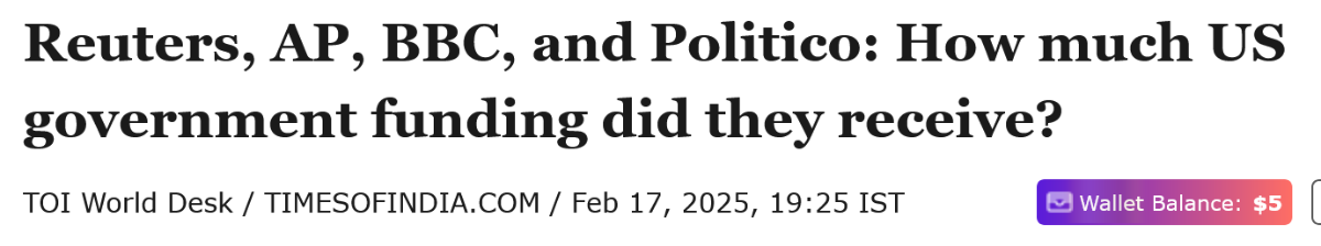 February 18Feb 18 https://timesofindia.indiatimes.com/world/us/reuters-ap-bbc-and-politico-how-much-us-government-funding-did-they-receive/articleshow/118333132.cms Read more at: http://timesofindia.indiatimes.com/articleshow/118333132.cms?utm_source=contentofinterest&utm_medium=text&utm_campaign=cppst