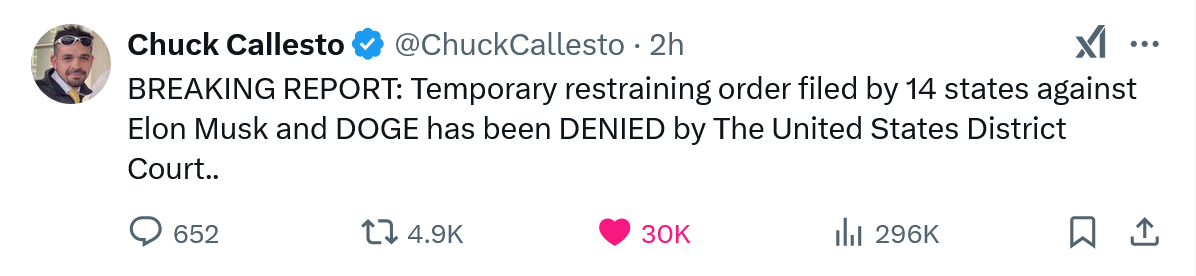 February 19Feb 19 5 hours ago, Procus said: Funny how all those outraged by DOGE in this thread have no problem with this I have no problem with that because it's clearly nonsense.