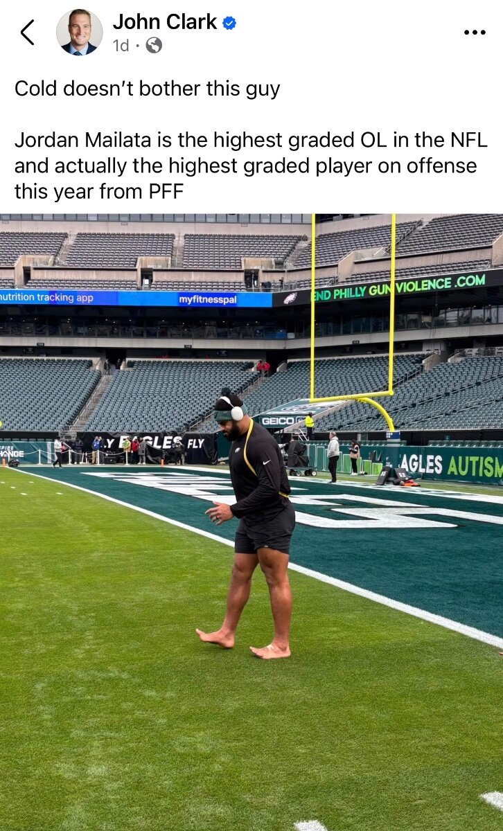 December 19, 2024Dec 19 10 hours ago, VaBeach_Eagle said: Let's also not forget his heart disorder that 10 years ago required two surgeries to repair it. I'm not sure if it 'almost killed' him, but I do know that he passed out at one point while he was playing rugby and that's what brought it to their attention and sent him into emergency surgery. That kind of thing would sideline most people from rigorous activities permanently, but look at him today. Quite amazing, from the outside looking in. I didn’t know that! Must have missed that report when it came out. Yeah I mean that makes it even more incredible then! What a player and what a guy. 9 hours ago, time2rock said: PFF has him as the highest rated player at any position on offense … not just OT (or OL). That’s absolutely amazing considering all of the immensely talented offensive players there are. Yeah sorry I’m not disputing that I’m just saying there would still be a debate to be had as to whether he’s the best LT or OT in football despite that rating.