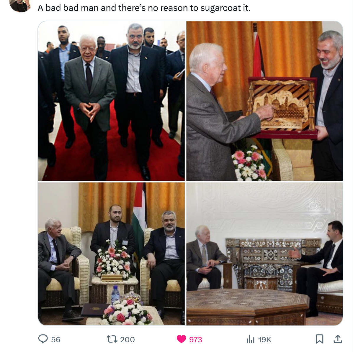 January 5Jan 5 Some of the worst posters on this board hate Jimmy Carter. I’d say that probably means he was a great person.