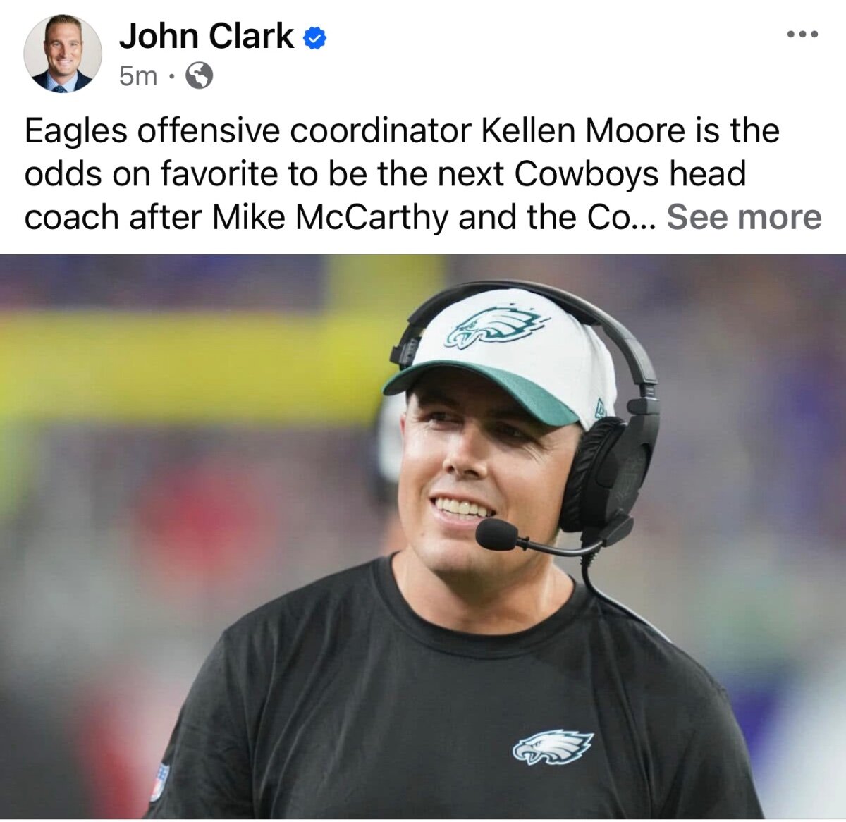 January 17Jan 17 How is this right, and fair, that 2 days, and 1 day, before an important playoff game, Moore is doing 3 interviews? It’s just ridiculous that this is even allowed to happen? Do the Eagles not need to give permission for these teams to request interviews? and even if they didn’t, Kellen Moore should have told these teams to come back in a few weeks…if they are serious about possibly wanting him, they’ll wait… I wouldn’t even be surprised if teams like the Cowgirls are doing this purely as a distraction to try and mess with Moore’s Divisional game preparations, and actually have zero interest in hiring him… Despicable practice that this is allowed to happen to a SuperBowl contender…