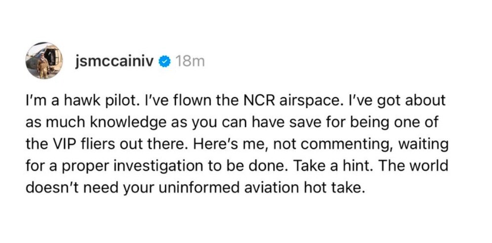 January 30Jan 30 So, basically, an alleged Blackhawk pilot and trainer says that the most likely error was that the helicopter crew weren't paying attention.
